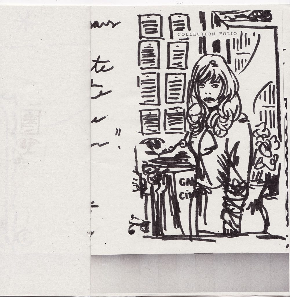 Lors de mes lectures, je ne peux pas m’empêcher de dessiner ce que le bouquin m’inspire lorsque j’arrive à trouver une page vierge entre deux chapitres. Stylo feutre.