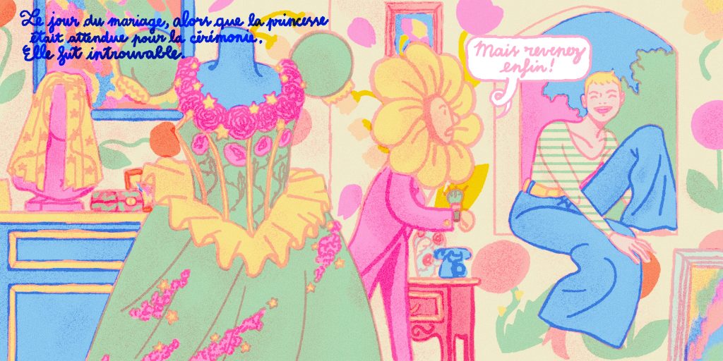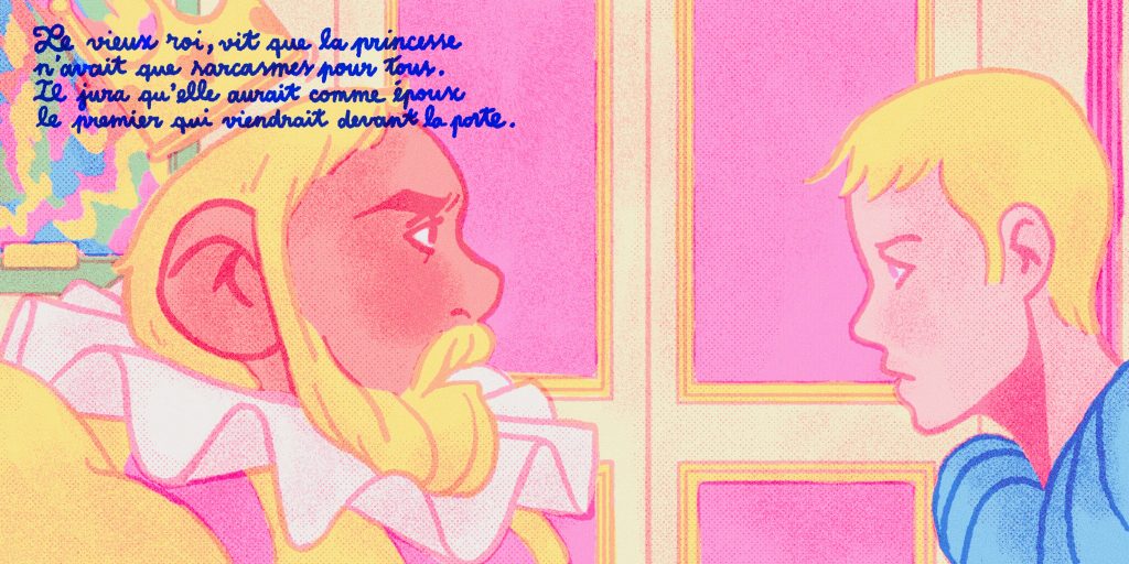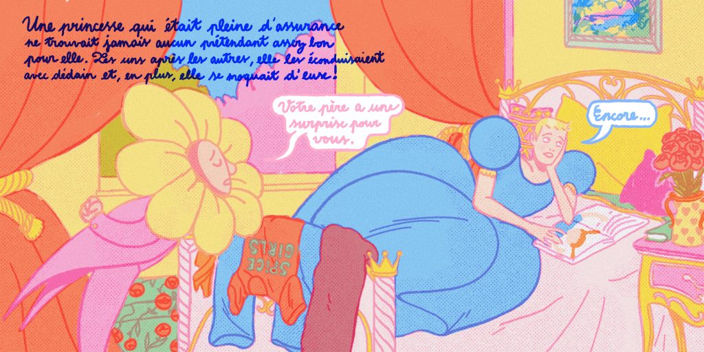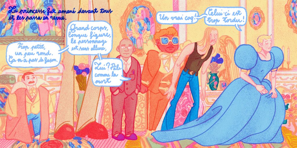 Revisite d’un conte des frères Grimm, allant à contre-sens de la morale du conte original, ici, la princesse ne trouve pas de prince charmant. Tous les prétendants sont trop nuls pour elle. Procreate.